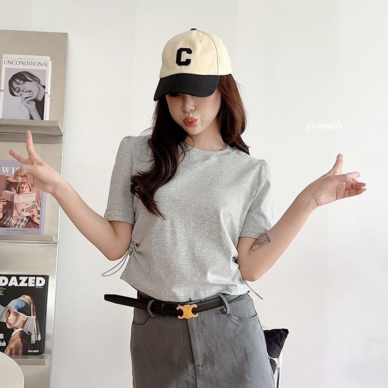 韩风抽绳修身T恤